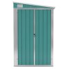 Poiché è costruito in acciaio zincato e metallo, il magazzino richiede una manutenzione minima ed è molto durevole. Le porte a doppia apertura nella parte anteriore consentono un facile ingresso e uscita. La maniglia in plastica con funzione di blocco garantisce la sicurezza del prodotto. Inoltre, l’acqua piovana defluisce automaticamente dal tetto grazie al suo design inclinato.