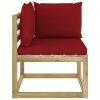 La seduta angolare è realizzata in legno di pino impregnato, che la rende durevole e resistente agli agenti atmosferici. I cuscini dall’imbottitura spessa aggiungono il massimo comfort. Questo divano angolare ha una struttura solida e richiede poca manutenzione. Il divano in legno è stato progettato appositamente per essere utilizzato come parte di un set da salotto e può essere anche usato come poltrona singola. Potete combinarlo con altri segmenti modulari, come un tavolino, un poggiapiedi e una poltrona centrale, per creare le vostre configurazioni personali di set salotto da giardino!