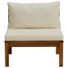 Costruito in legno massello di acacia, il divano centrale è resistente, robusto e durevole e la sua finitura a olio rende il divano adatto per l’uso all’esterno. I cuscini imbottiti del sedile e dello schienale offrono il massimo comfort di seduta. Potete combinare questo set con gli altri segmenti modulari disponibili per creare il vostro salotto personalizzato nel giardino.