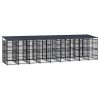 Questa gabbia per cani offre ampio spazio per gli esercizi. Le pareti a barre d’acciaio aiutano a prevenire danni e incidenti imprevisti consentendo al tempo stesso la ventilazione. Grazie alla robusta struttura in acciaio verniciato a polvere, questa cuccia per cani è resistente e costruita per durare. Il tetto offre protezione da sole, pioggia, neve e altre condizioni atmosferiche. La porta a battente con sistema di chiusura con serratura garantisce maggiore sicurezza e protezione per i vostri cani.