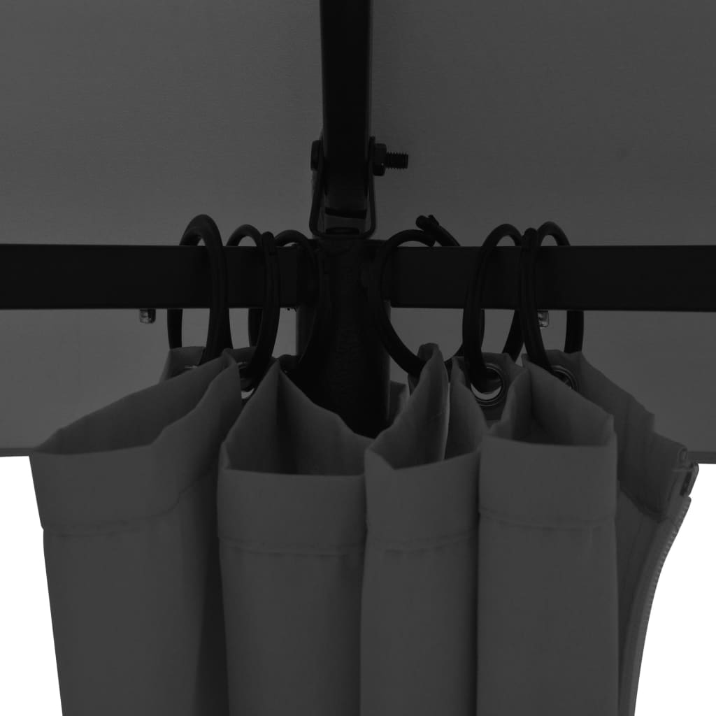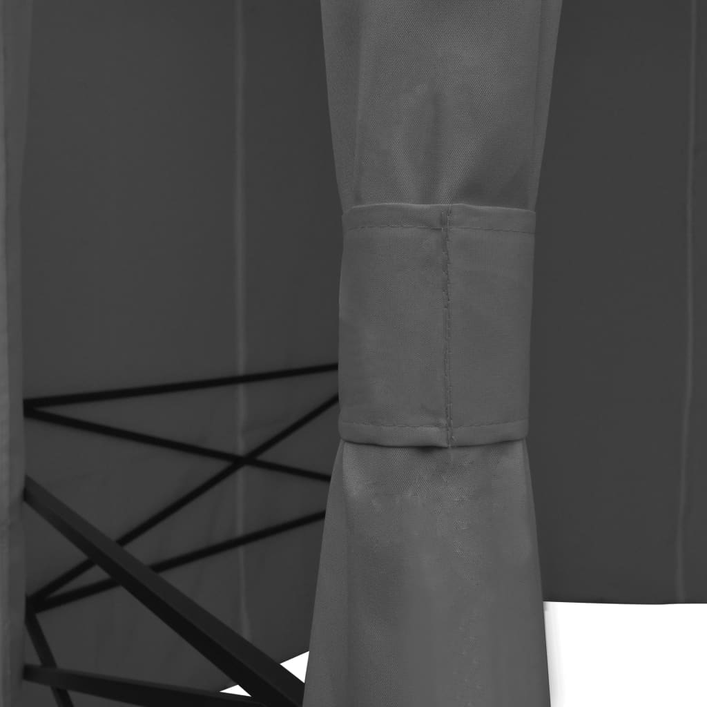 La copertura del tetto e le tende sono idrorepellenti, sono infatti realizzate in tessuto di poliestere con rivestimento in poliammide (PA). Il telaio robusto è costruito in solido acciaio verniciato a polvere, quindi antiruggine e molto stabile. La copertura ha un design elegante a doppio sfiato per consentire una ventilazione ottimale. Le tende in poliestere sono facili da pulire e possono essere chiuse per offrire maggiore privacy o essere tenute aperte con le apposite fasce incluse.