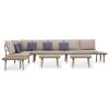 Questo set di mobili da giardino, facile da pulire e resistente, è realizzato in legno massello di acacia, un legno duro tropicale resistente agli agenti atmosferici ed in grado di durare al meglio per molti anni a venire. Il robusto telaio in acciaio rende il set di divani da patio molto solido e resistente. È anche possibile poggiare spuntini, bevande, tazze da tè, libri o altri piccoli oggetti sulle piccole estensioni in legno. Questo set include cuscini per seduta e schienale e piccoli cuscini aggiuntivi molto comodi e dalla spessa imbottitura. Le coperture in poliestere richiedono poca manutenzione e possono anche essere rimosse e lavate. Il set necessita di assemblaggio.