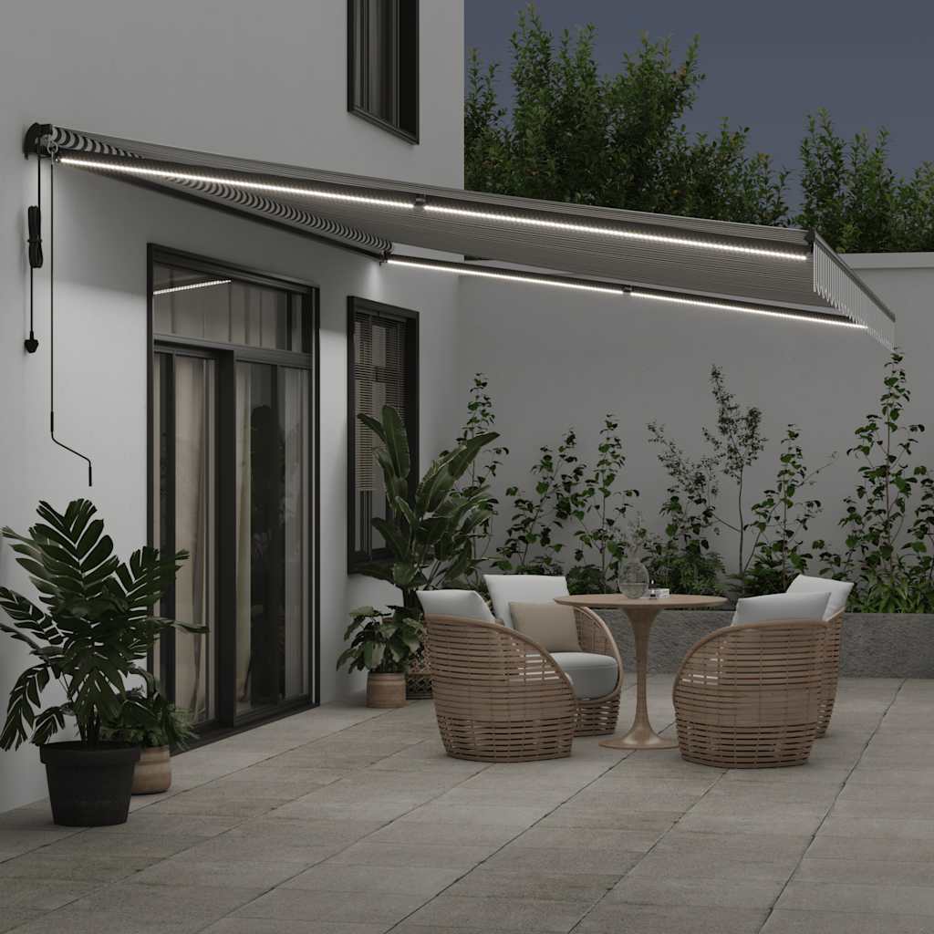 Tenda Retrattile Automatica Led Antracite E Bianco 600x300 cm